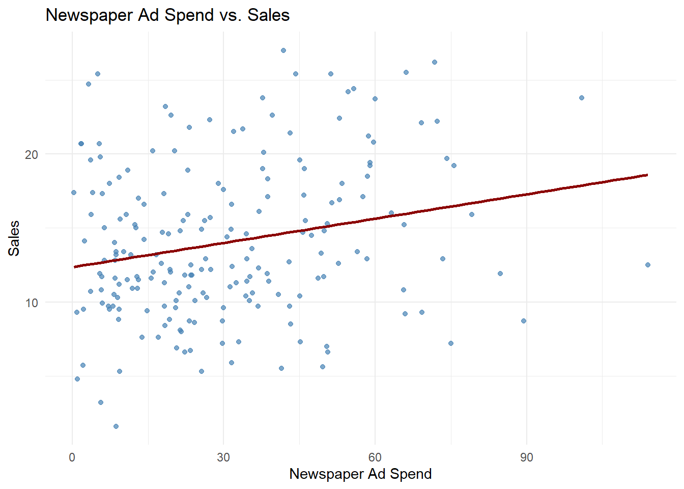 labs(x = "Newspaper Ad Spend", y = "Sales",
